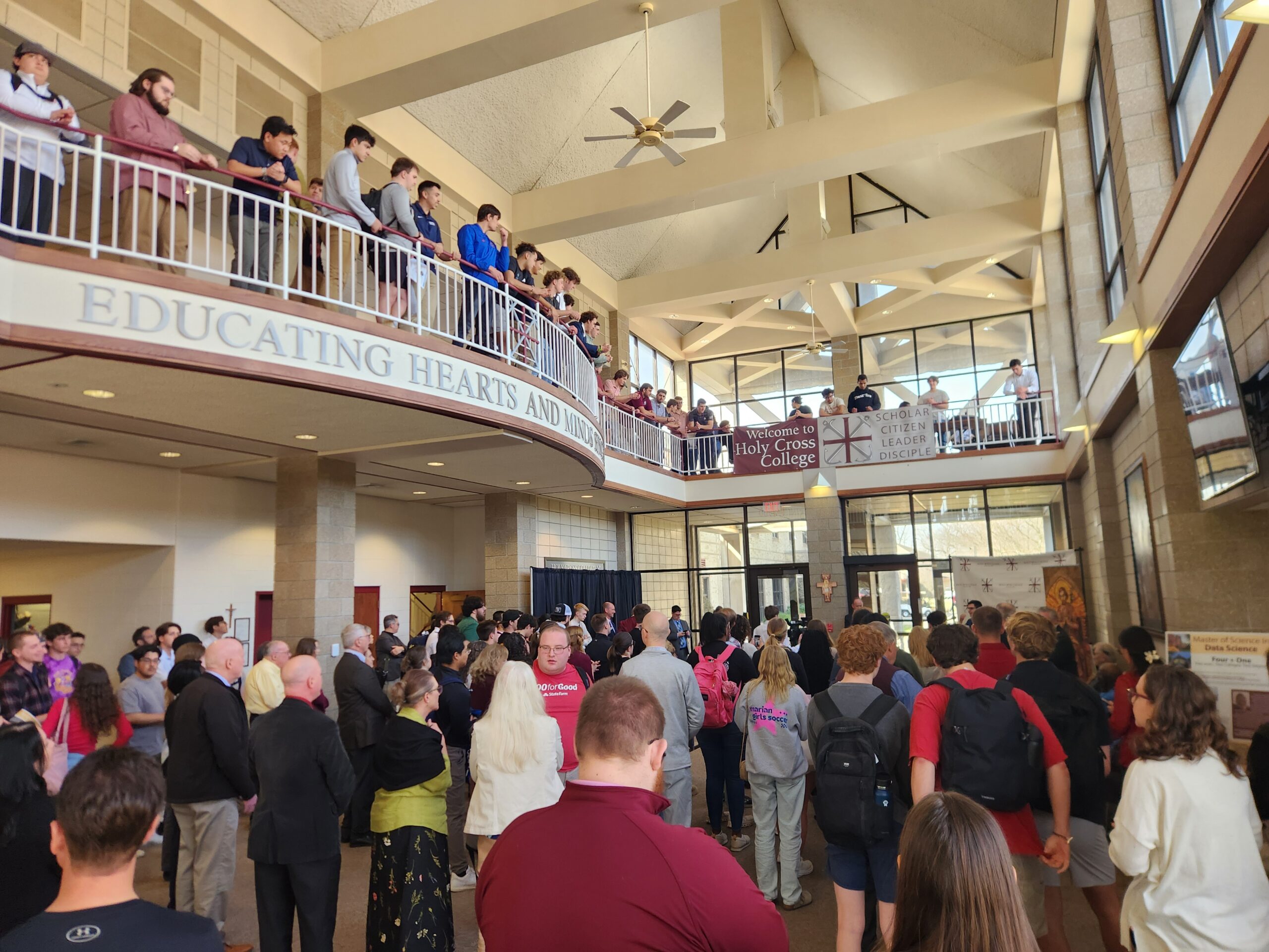 On March 19, Holy Cross College came alive with celebration as hundreds of students, faculty, staff, and the Brothers of Holy Cross gathered in the Atrium to honor a legacy of faith, service, and education that has shaped the institution for decades.