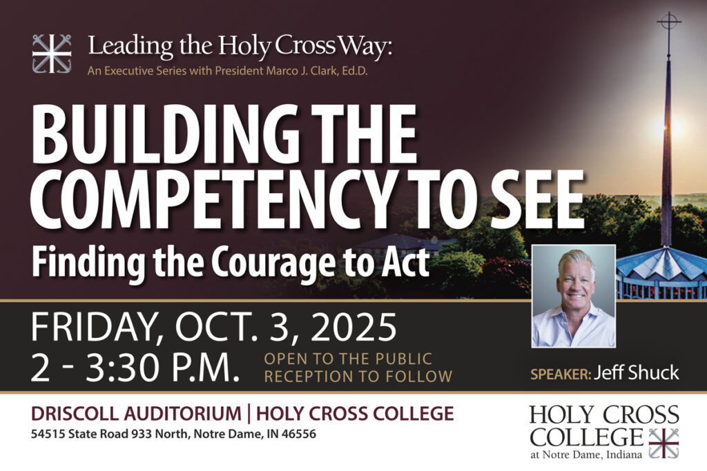 The Leading the Holy Cross Way executive series continues Friday, October 3, at 2 p.m. in Driscoll Auditorium with Jeff Shuck, founder and president of More For Many, who brings more than three decades of experience helping nonprofits and purpose-driven businesses grow their impact.